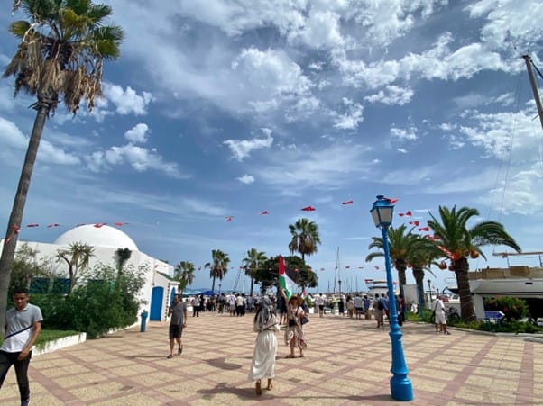 TUNISIA – Pada Minggu (7/9/2025) sore konvoi kapal-kapal Global Sumud Flotilla dari Spanyol dan Italia telah memasuki perairan Tunisia. Para peserta konvoi dan perwakilan 44 negara pun menyambut kedatangan konvoi kapal Flotilla tersebut di Pelabuhan Sidi Bou Said, dan siap berlayar menuju Gaza.