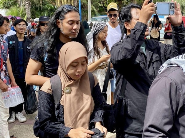 “Sementara menunggu kedatangan bot-bot Global Sumud Flotilla yang telah berlepas dari Spanyol dan Italia, penduduk Tunisia dan juga para peserta Global Sumud Flotilla dari 44 negara lain yang juga akan berlepas dari pelabuhan Tunisia mengadakan satu demonstrasi solidariti buat Gaza,” tulis akun instagram Sumud Nusantara Official.